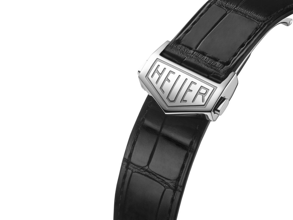 A fim de alcançar a icônica abertura de data das 9 horas, os relojoeiros qualificados da TAG Heuer retrabalharam seu cronógrafo interno para acomodar esta função. Este calibre moderno com sua arquitetura integrada, impressionante reserva de energia de 80 horas e perfil mais fino é então colocado dentro de uma caixa de vidro do TAG Heuer Carrera. O cristal fortemente dominado assentado sobre o mostrador recria o visual das coberturas de vidro plexi/mineral dos relógios mais antigos. Isso dá ao relógio uma sensação vintage, e também alguns toques de design evocativos com as bordas do cristal fluindo em uma ranhura recuada ao redor da moldura. Outra característica especial é a dedicação do 160º aniversário da massa oscilante.