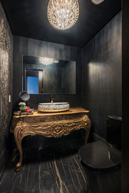 O preto frequentemente associado ao minimalismo e ao design moderno, assim a pintura de paredes e a especificação de móveis monocromáticos ou com revestimentos escuros declaram ousadia, sem necessariamente o colocar como coadjuvante do espaço. Priscila e Bernardo propõem trabalhar com as diferentes variações de gradiente como preto fosco, metálico, azulado, grafite, carvão ou sutil.