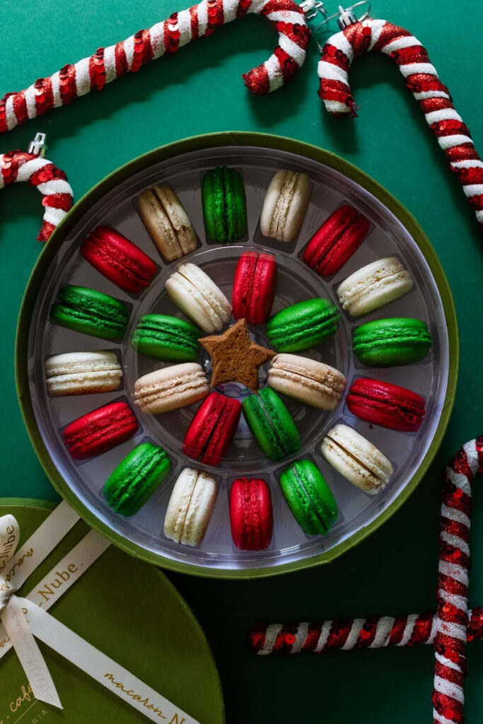 - Uma das especialidades da confeitaria, os macarons entraram no clima natalino! As guloseimas vêm em formatos de guirlanda (R$ 7), árvore de Natal (R$ 7), rena (R$ 7) e boneco de neve (R$ 8). Há ainda a Guirlanda de Macarons (R$ 65), uma caixa com 24 macarons à escolha do cliente com uma estrela de gingerbread para dar o toque especial. Entre os sabores, estão: beijinho, brigadeiro, nutella, goiaba, maracujá, churros, baunilha e tiramissu.