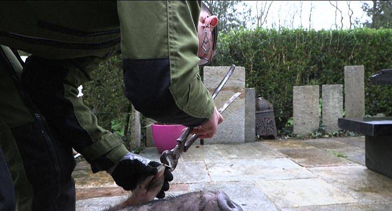 Os cascos “crescem tanto que, depois de um tempo, o porco fica incapacitado”, explica a profissional.