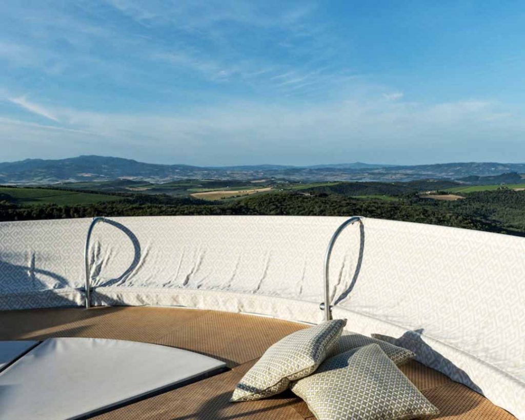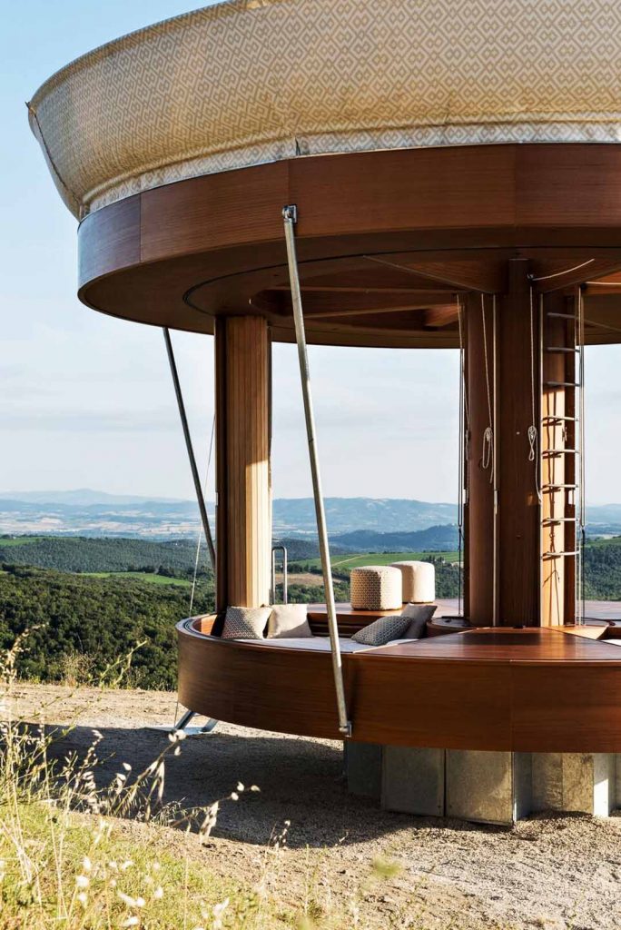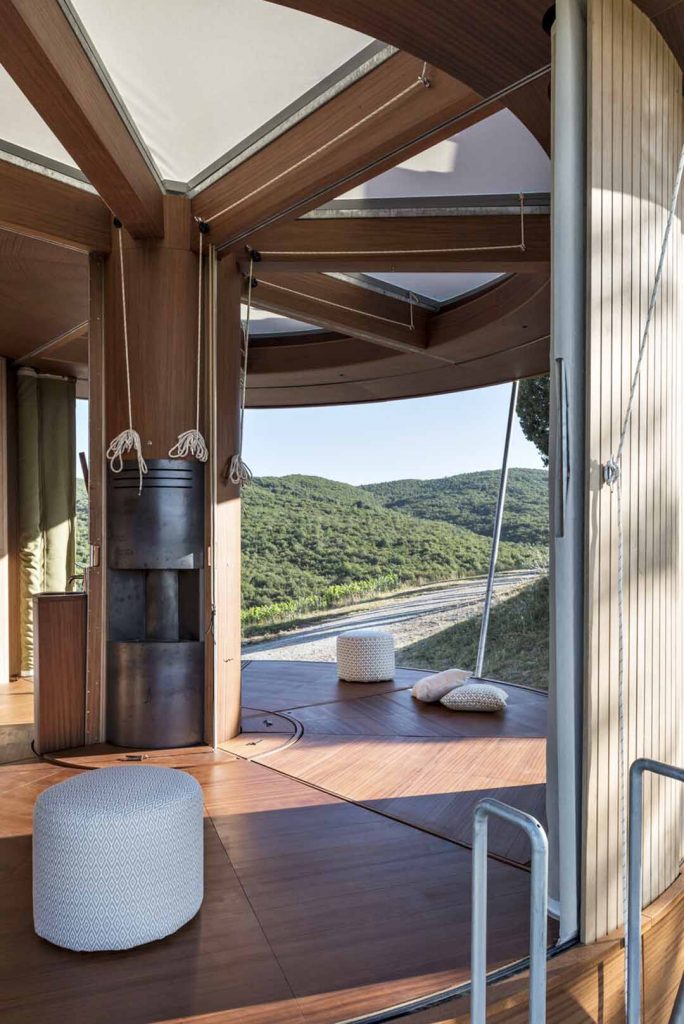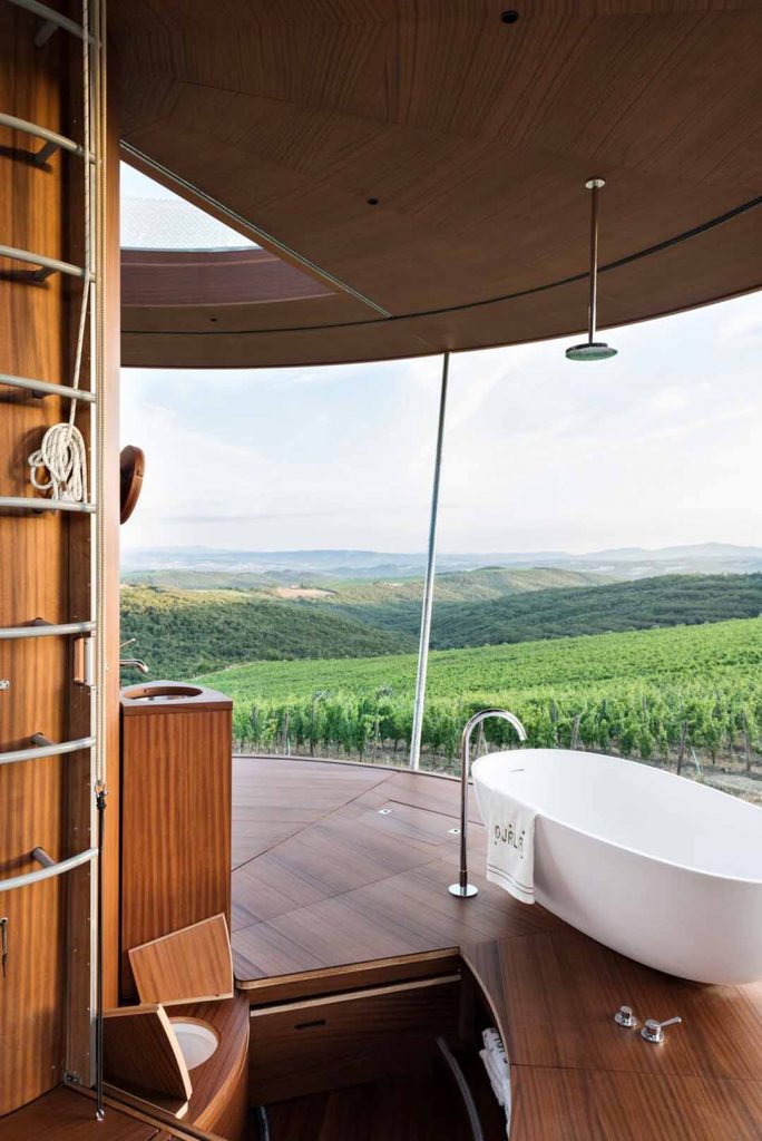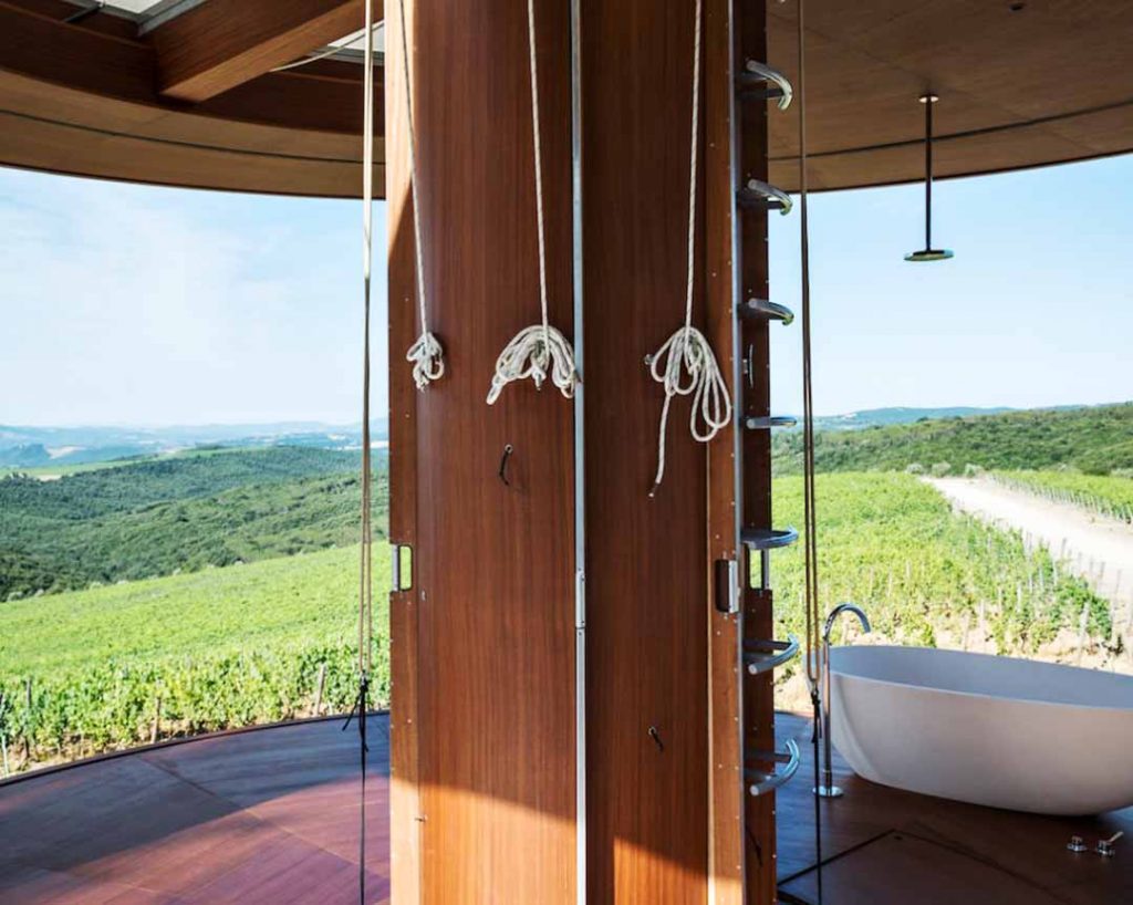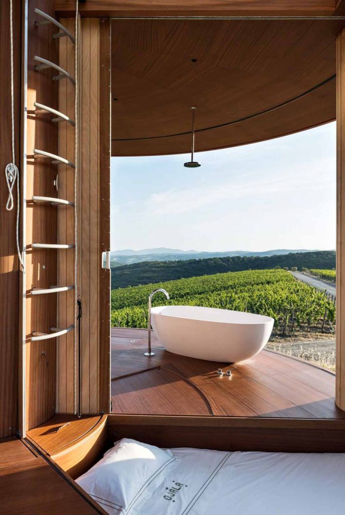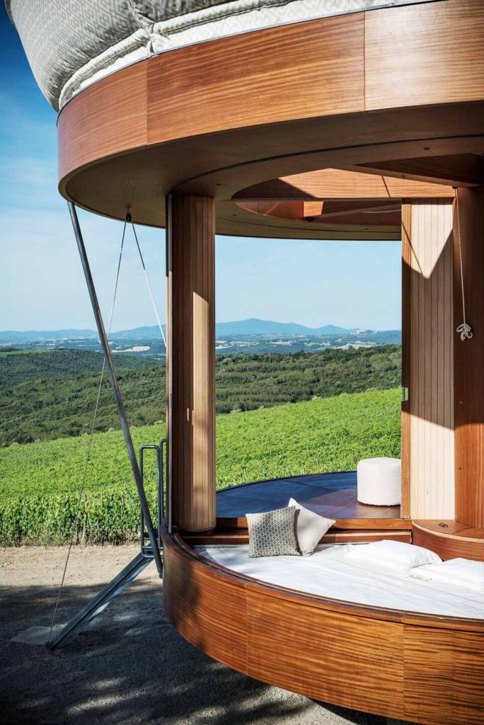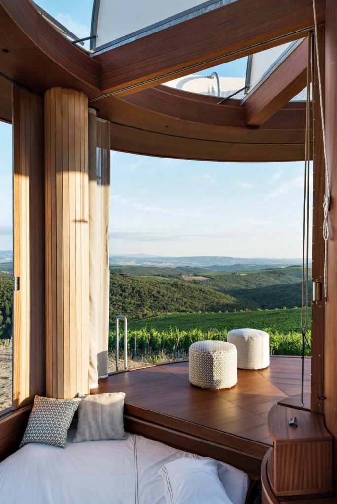O projeto de design, da arquiteta italiana Beatrice Bonzanigo, foi cuidadosamente instalada para oferecer uma vista panorâmica para o vinhedo Capanna e as colinas e ciprestes da região da Toscana. Para os amantes dos vinhos, além de se hospedar em um lugar que promete ser único, a estada reserva ainda proximidade com as vinícolas locais.