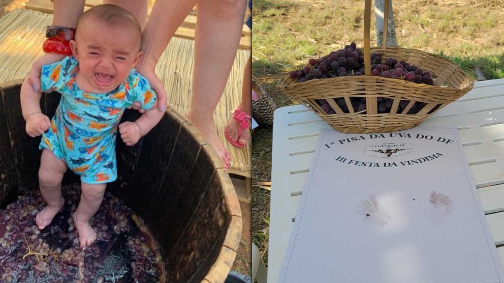 Para a empresária Nivalda Barbosa, foi uma experiência incrível! “Recebi o convite da Rachel Alves, presidente das Amigas do Vinho do DF e quem organizou o evento das Amigas, cumprindo todos os protocolos de segurança, para a III Festa da Vindima da Fazenda Califórnia/DF. Fantástico, primeira vez que participei da pisa da uva, ainda mais que foi a 1° Pisa da Uva do DF. Aprendi a colher a uva na parreira e caminhamos pelos parreirais. Ao fim, tomamos um maravilhoso café com bolos, geleia, sucos, salgadinhos. Uma confraternização muito agradável numa bela tarde de sábado. Amei a experiência da 1° Pisa da Uva do DF e isso acontece no Rio Grande do Sul, mas eu nunca tinha participado. Inclusive, ao mandar o meu vídeo para os amigos, eles acharam que eu estava no Sul, pois não sabiam que aqui tinha. Fomos super bem recebidos pelos donos da fazenda, em especial pela Raquel. Incrível, sensacional!”