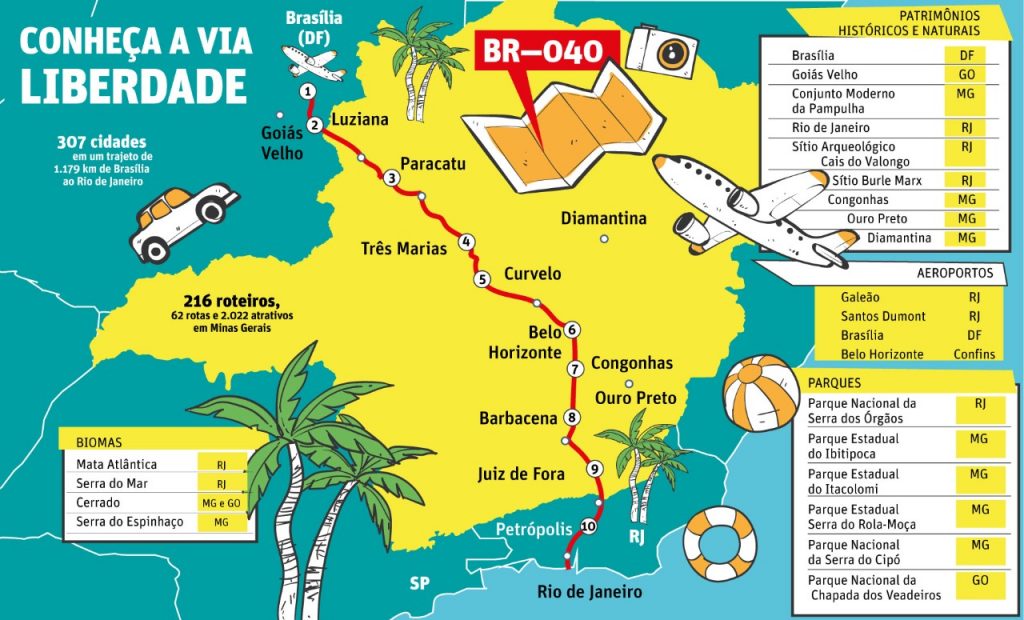 O projeto busca as oportunidades turísticas contidas no percurso de 1.179 quilômetros da BR-040 por meio de ações e programas estratégicos, que incluem patrimônios da humanidade, paisagens entre montanhas e mar, cidades imperiais, natureza exuberante, horizontes, capitais, metrópoles, comidas típicas, tradições, sertão, arte e contemporaneidade.