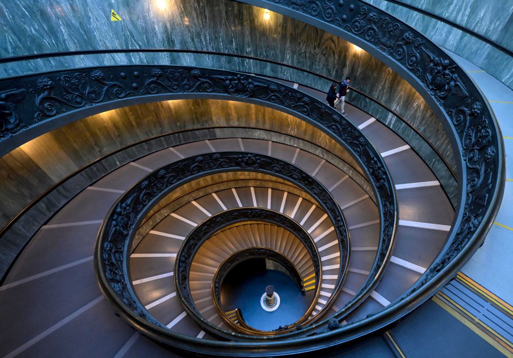 Da monumental escadaria de Bramante à Galeria dos Mapas Geográficos, Gianni Crea caminha entre esculturas de mármore, antiguidades romanas e obras do Renascimento.