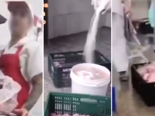 Um vídeo circulando nas redes sociais, narrado anonimamente por uma pessoa que afirma ser ex-funcionário do açougue, revelou diversas práticas questionáveis. O denunciante menciona que os funcionários misturavam carnes “passadas” e mostra imagens dos alimentos sendo arrastados em caixas pelo chão durante a limpeza do local.