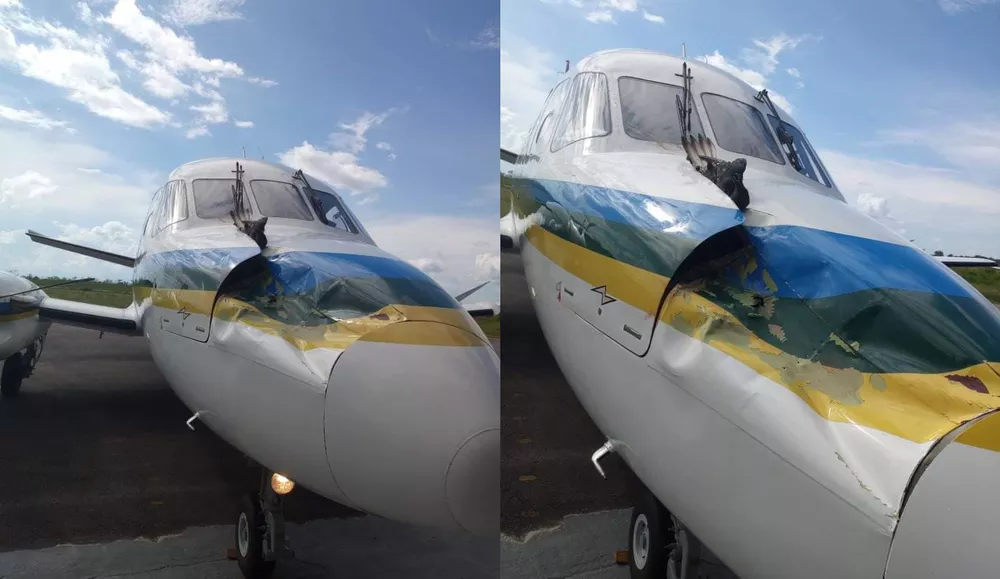 Com a colisão, a aeronave ficou com danos na estrutura frontal.