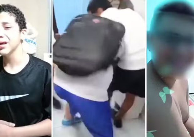 A mãe de um adolescente de 14 anos relatou que seu filho foi agredido por sete colegas na mesma escola onde Carlos Teixeira, um menino que faleceu após ser agredido por dois estudantes pularem sobre suas costas, foi vítima de violência.
