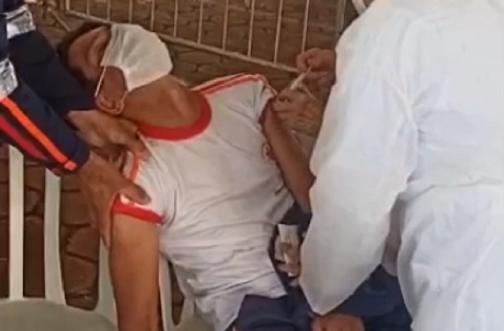 Um amigo do profissional de saúde registrou o momento em vídeo. Pouco antes de ser vacinado, Rodrigo começa a tremer e, quando a injeção é aplicada, o profissional desmaia.