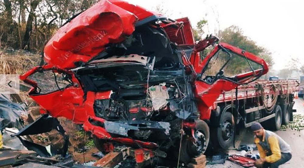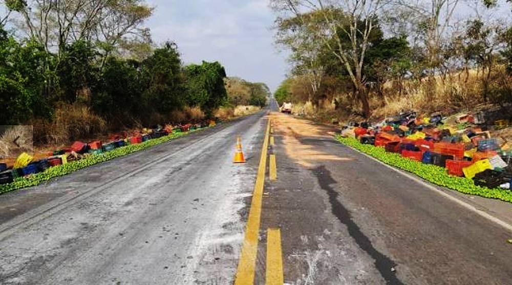 Após o fogo no mato, uma árvore teria tombado na pista e o motorista da van, ao tentar desviar, bateu de frente com o caminhão, que estava carregado com caixas de limões, segundo a Polícia Rodoviária Federal. A carga ficou espalhada na pista.