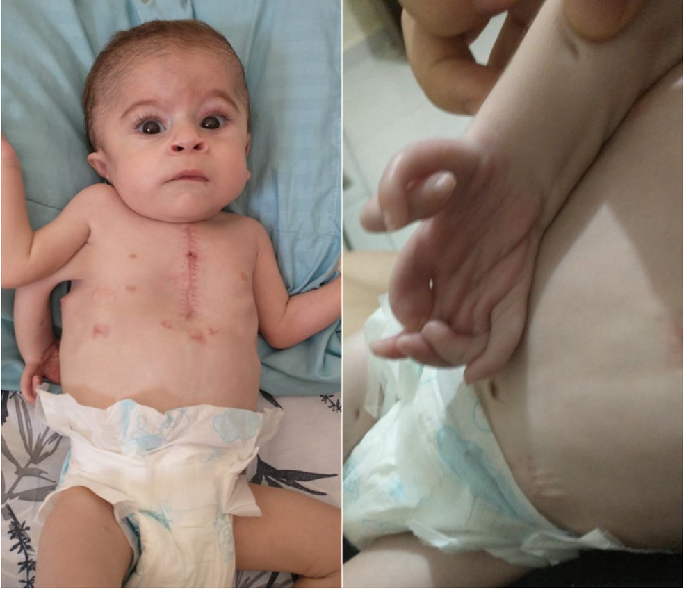 Um bebê de 5 meses nasceu com três braços, metade de um coração, além de outras condições clínicas, que o fizeram passar por cinco cirurgias. Os pais de Cesar buscam por procedimentos cirúrgicos que possam salvar a vida do filho.