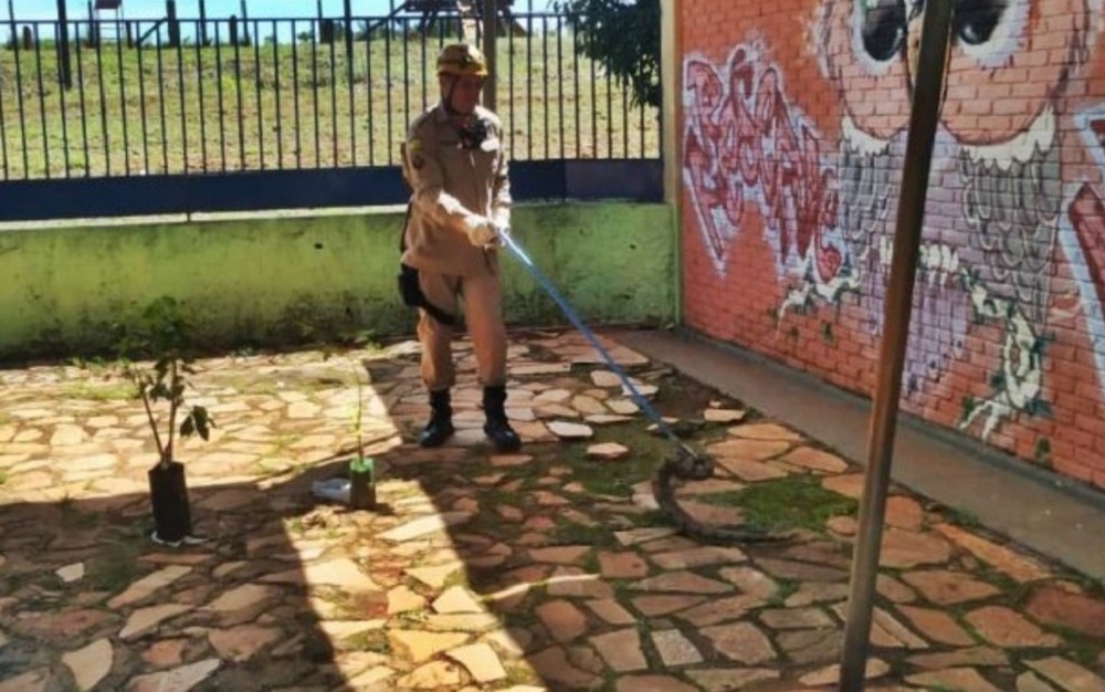 Um equipe do Corpo de Bombeiros capturou uma cobra de quase dois metros no pátio de uma escola. Os funcionários da escola foram os primeiros a notarem o anima. Em seguida, os profissionais acionaram os militares.