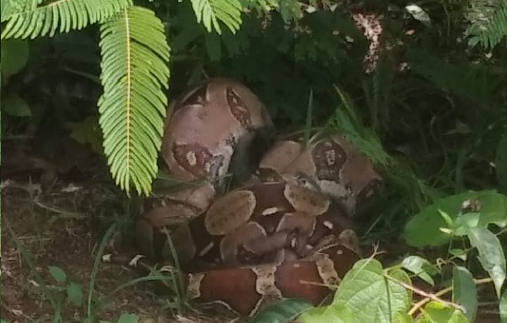 Uma jiboia foi flagrada comendo um gato na Universidade Federal de Rondônia (Unir) em Porto Velho, nesta quarta-feira (13).