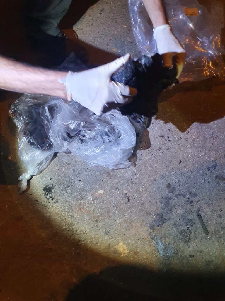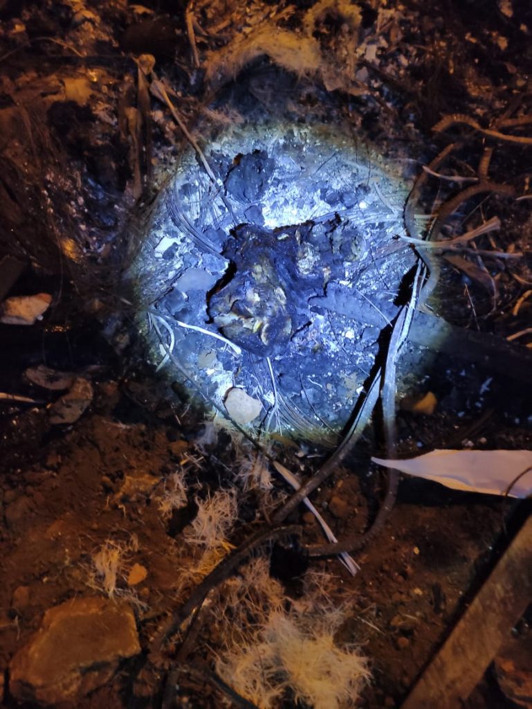 Na cena do crime, os policiais encontraram alguns restos mortais da vítima: um fragmento da coluna vertebral e um fêmur.