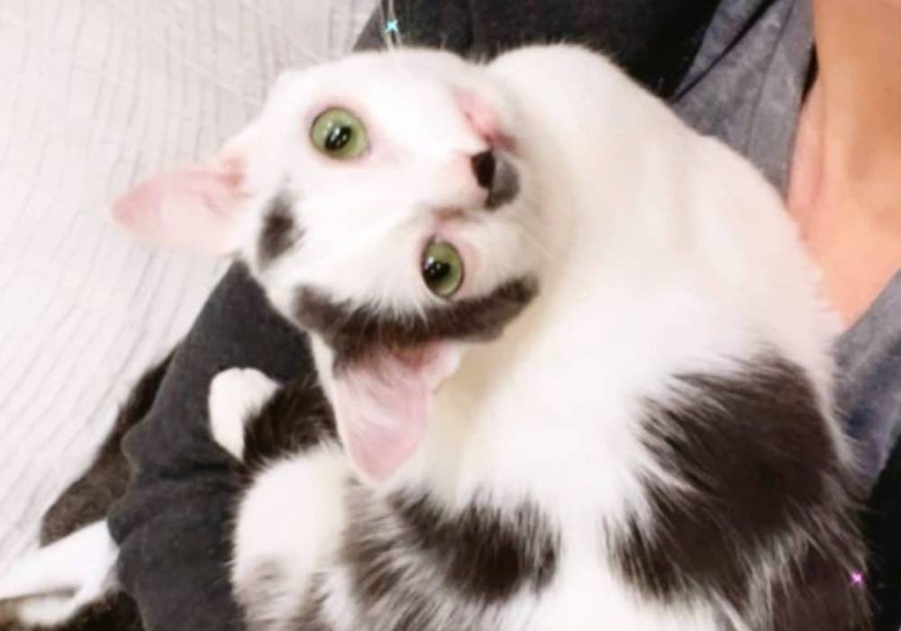 Com grandes olhos verdes e o maxilar torto, que deixava alguns dentinhos sempre aparentes, o bichano logo chamou a atenção dos seguidores das redes sociais da associação.