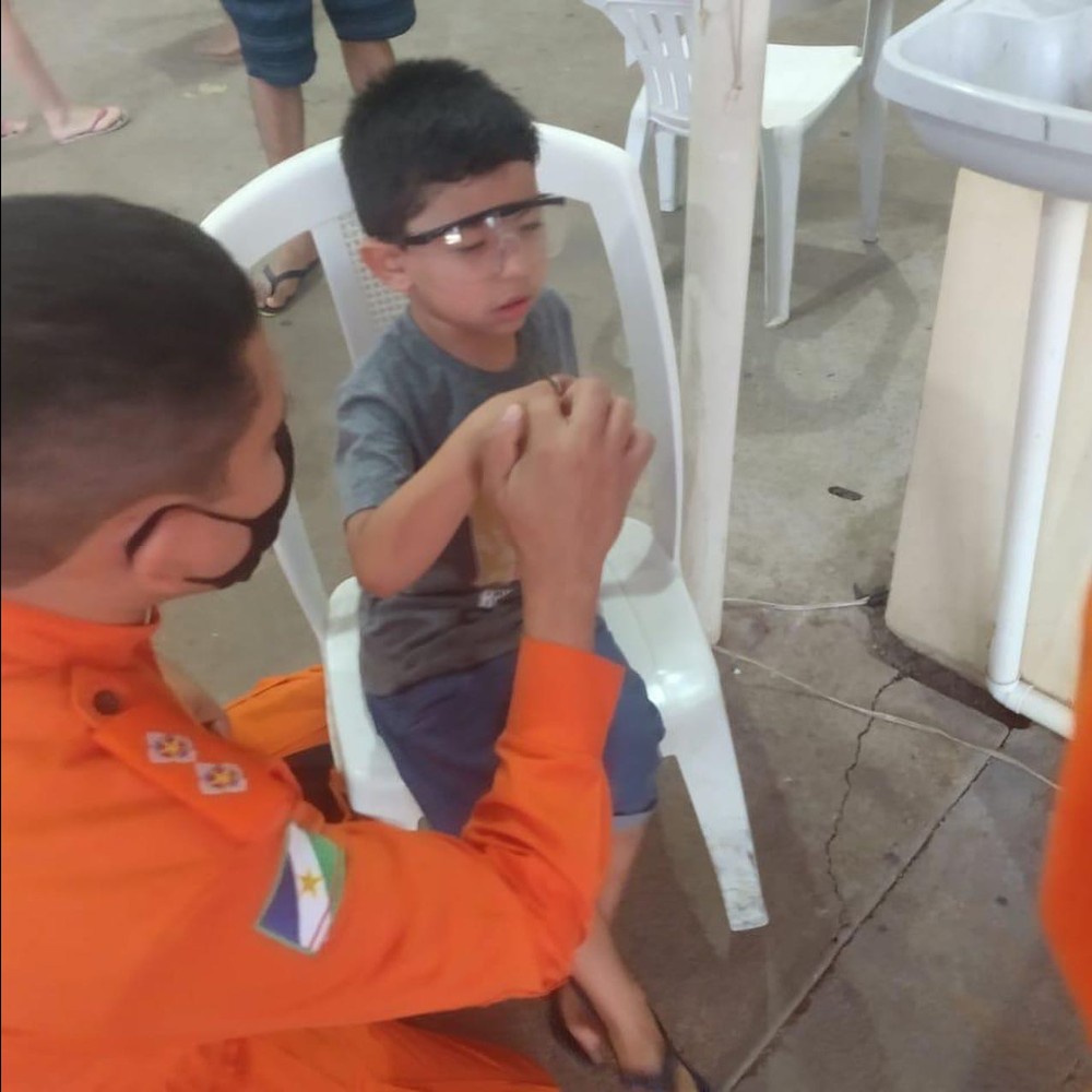 A criança foi encaminhada pelos pais até o edifício do Quartel do Comando Geral dos bombeiros. No local, a equipe de militares constatou que o dedo do menino já estava bastante inchado.