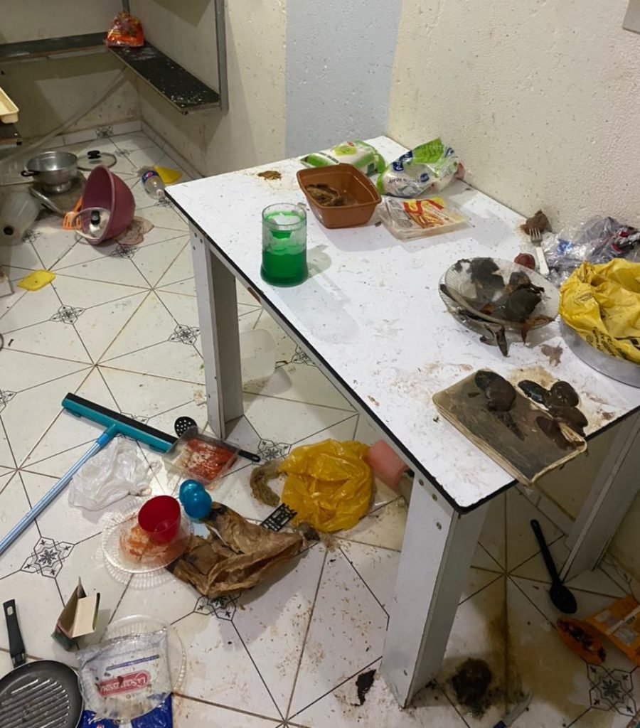 Imagens resgate das crianças mostram a casa tomada por sujeira, alimentos podres e objetos espalhados. O mau cheiro era forte na residência.