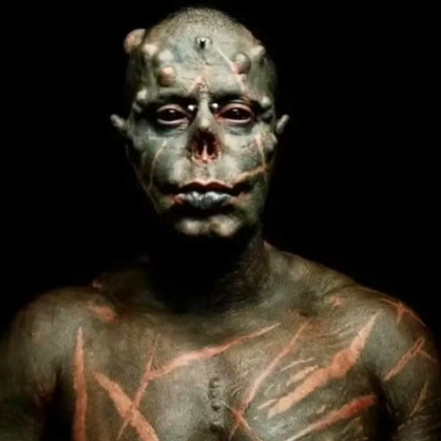 Oficialmente conhecido como Diabão, o tatuador brasileiro entrou para o Guinness devido às suas modificações corporais e agora adotou esse apelido como seu nome.