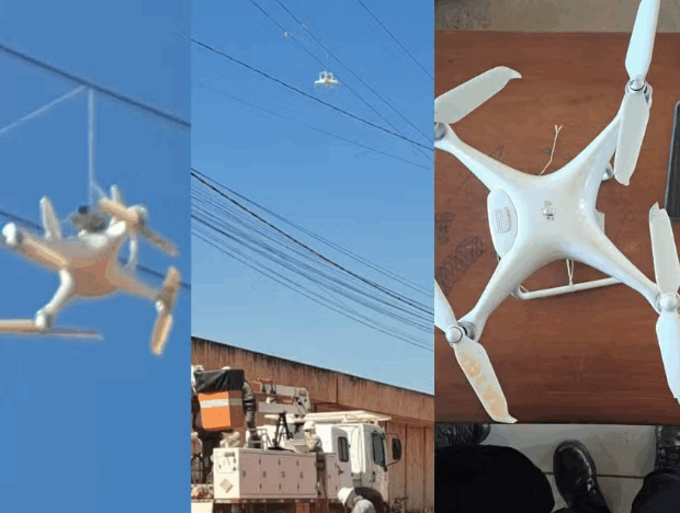 Agentes da guarita de vigilância visualizaram o drone durante a tentativa de entrada. O aparelho acabou ficando preso na fiação de um poste, o que impossibilitou que a carga chegasse ao destino.