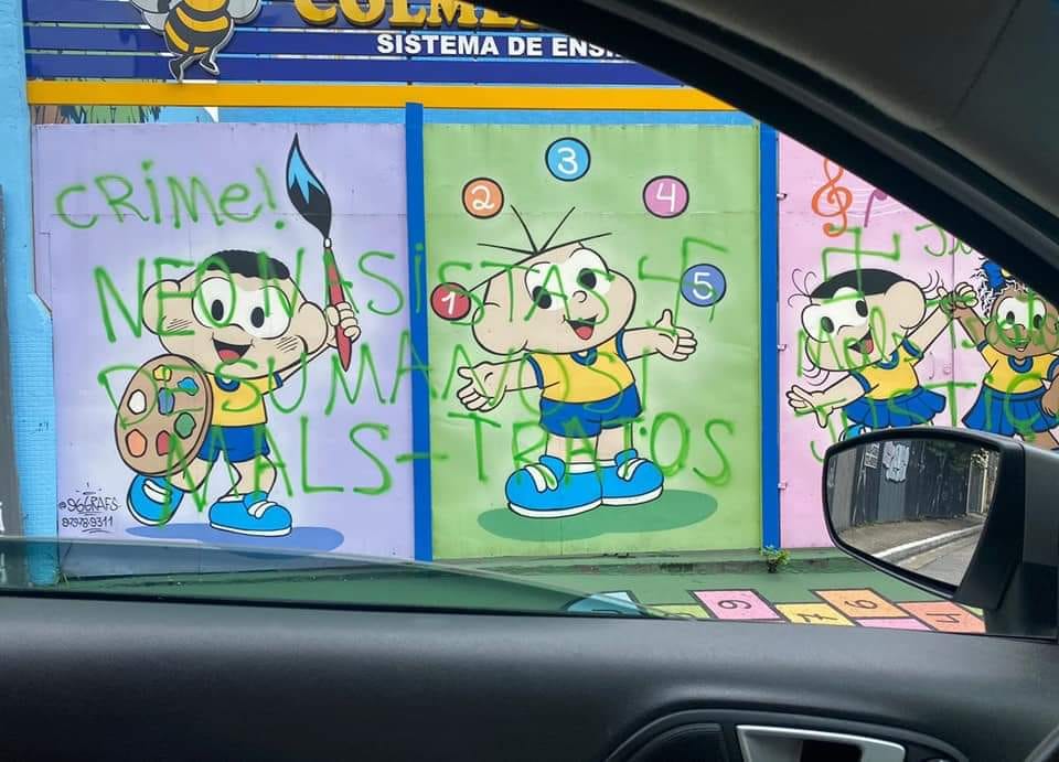Depois da alta repercussão do vídeo, a escola foi pichada com mensagens de ódio e revolta diante a situação. “Crime”, “desumano”, “maus-tratos”, “lixo” e “justiça”, foram marcadas na faixada do local.