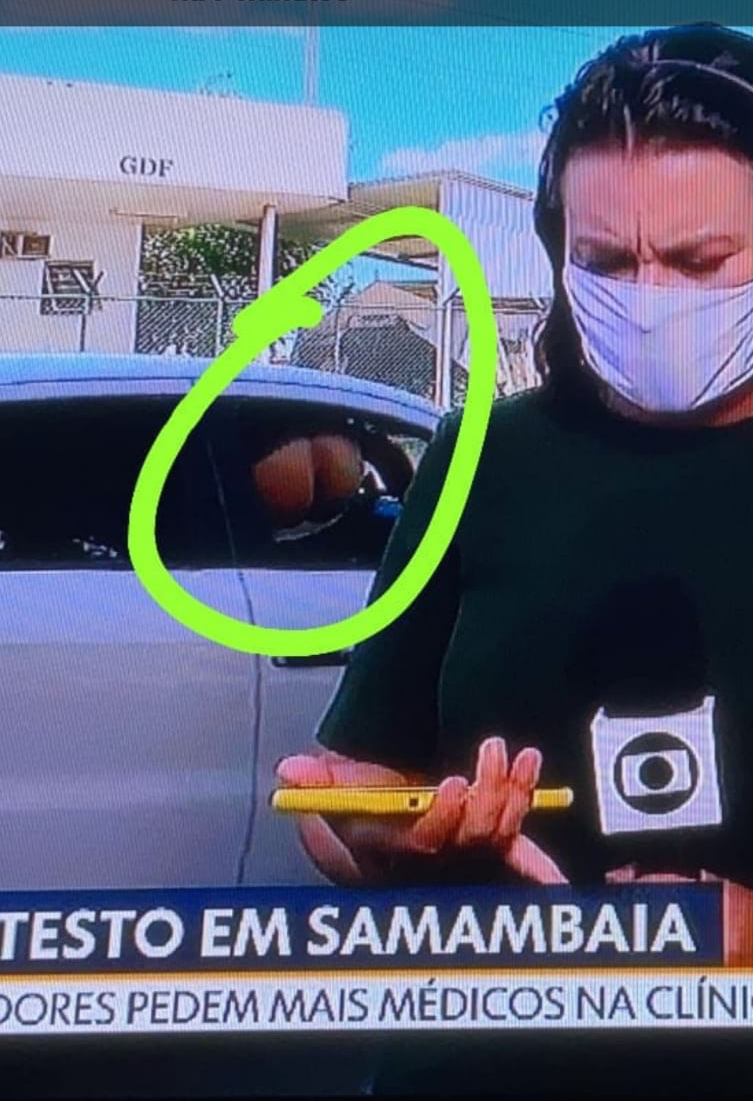 A repórter da emissora realizava uma passagem ao vivo, em Samambaia, quando um carro branco passou por trás da jornalista e um passageiro mostrou as nádegas pela janela.