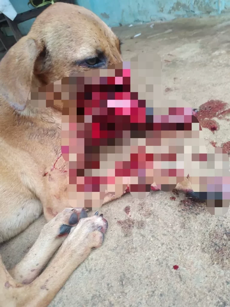 Após o crime violento, o cão agonizava e sofria muito de dor. ONGs de proteção de animais do Tocantins compartilharam a situação e pediram justiça.