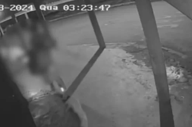 Imagens das câmeras de segurança capturaram o momento em que um homem abandonou o corpo de uma mulher, de 43 anos, na calçada de um estabelecimento comercial em Nerópolis, na região metropolitana de Goiânia.