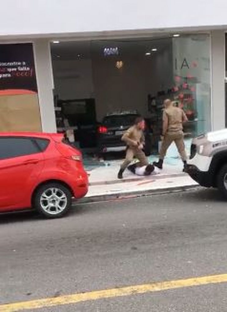 Na terça-feira (11), um homem de 32 anos foi preso em flagrante após invadir uma loja com um carro em Balneário Camboriú (SC).