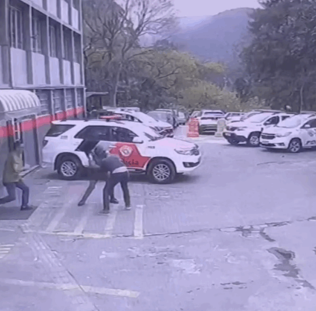 Câmeras de segurança registraram o momento em que o homem entra repentinamente no local e avança contra o soldado Nascimento, iniciando uma luta corporal para tentar tomar sua arma. Outros policiais e pessoas presentes intervieram rapidamente, conseguindo conter o agressor.