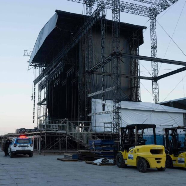 Um homem que trabalhava na montagem do palco da cantora Shakira, que fará um show em Copacabana no dia 2 de maio, morreu ao ser atingido por uma parte da estrutura neste domingo (26).
