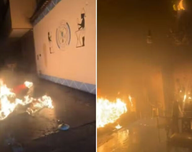 Nas imagens, é possível ver que o incêndio atingiu paredes, teto e parte do portão. Cadeiras e outros objetos do interior também foram destruídos. Moradores e frequentadores se mobilizaram rapidamente para tentar conter o fogo.