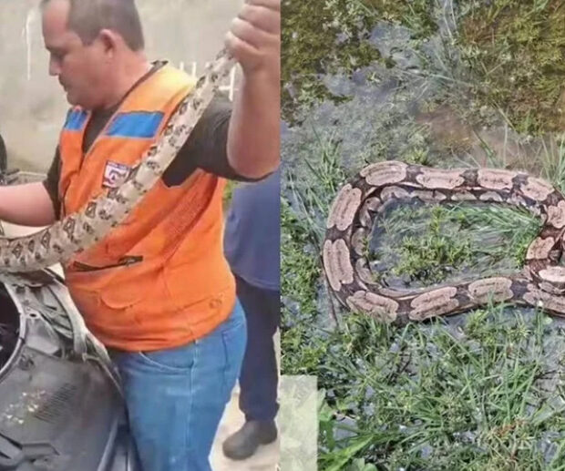 De acordo com relatos de moradores, a jiboia teria sido vista atravessando a rua momentos antes. Assustado com a movimentação, o animal acabou se refugiando no veículo. A ocorrência foi registrada por volta das 12h, quando a proprietária acionou a Defesa Civil do município.