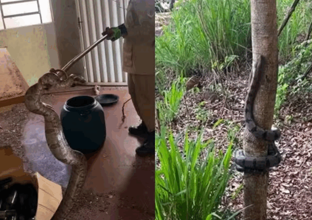 O caso ocorreu na terça-feira (11). A equipe dos bombeiros localizou a serpente embaixo da pia, onde ela havia se abrigado. Após a captura, a jiboia foi solta em uma área de mata, habitat seguro para a espécie.