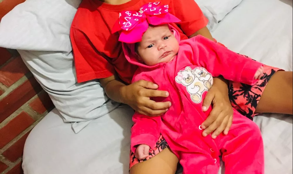 “Quando ela nasceu levei um susto. Eu já tenho um filho de cinco anos então não tinha o objetivo de ter mais nenhum, e eu sou nova ainda, então não planejava ter outro agora. E acabou que ela chegou assim, do nada. Veio de surpresa, e eu pensei ‘meu Deus como você estava assim escondida?’. Mas já a amamos muito”, conta ela, rindo.