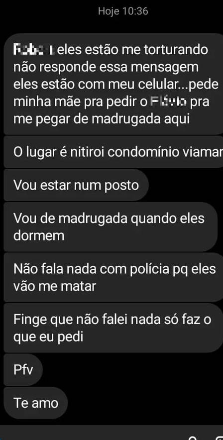 O pedido de ajuda aconteceu graças a um momento de distração do casal. A vítima conseguiu entrar em contato com um amigo através do celular, e ele logo contatou a mãe da moça.