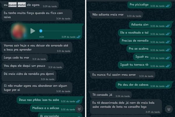 Em troca de mensagens com o namorado, a mãe chegou a planejar formas de abandonar a criança. “Vou levar ele no hospital e dizer que está mal, com diarreia e vômito. Aí ele vai ficar para fazer soro, vou dizer que vou na rua comprar algo para comer e vou abandonar ele lá”, calculou.