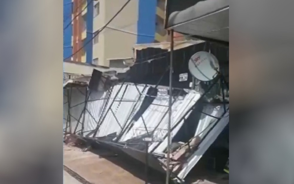 Uma marquise de um comércio caiu e atingiu três lojas e uma casa no Setor Turista I, em Caldas Novas, no sul de Goiás. Uma câmera de monitoramento flagrou o momento em que a estrutura cedeu. O acidente ocorreu na manhã de domingo (8). Ninguém ficou ferido.