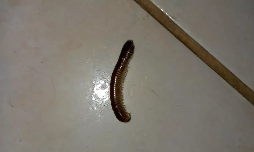 Depois que tirar o sapato, Manuela conseguiu ver que piolho-de-cobra estava dentro. O animal é parecido com uma lacraia, mas, felizmente, não é venenoso.