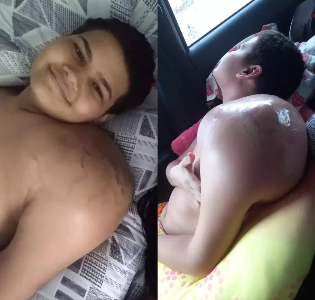 Primeiro, foi na perna esquerda, ele fez tratamento e ficou curado. Depois, a doença surgiu na perna esquerda. Agora, ele enfrenta o câncer pela terceira vez e convive com um tumor gigante no ombro.