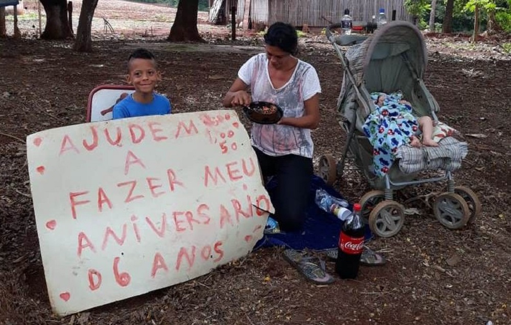 Com um cartaz na mão, um garoto de 5 anos pede aos motoristas que passam pela PR-497, em São Miguel do Iguaçu-PR, uma ajuda para que ele posso ter ao menos um bolo em seu aniversário. Com os pais desempregados e sem condições de pagar uma festa, Gabriel Zacarias está há dois anos sem comemorar a data. Este ano, ele luta para que seja diferente. O Portal G1 conversou com a família.