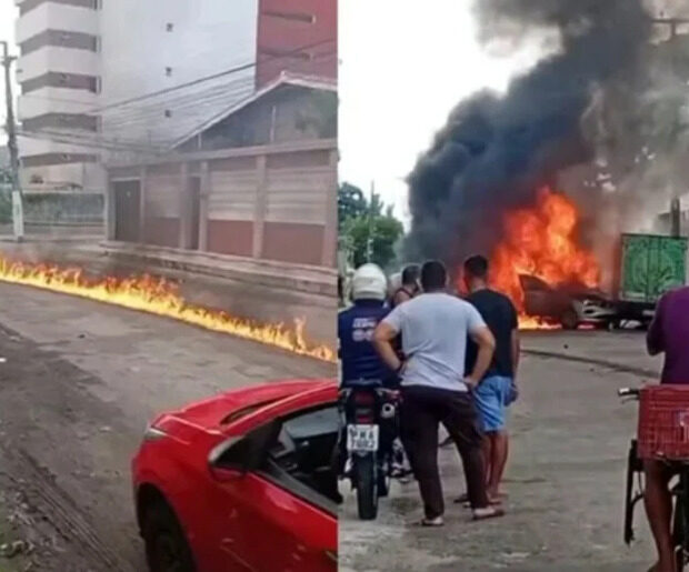 Uma discussão no trânsito terminou em um episódio violento na manhã deste domingo (15), no bairro Montese, em Fortaleza, no Ceará. Um motorista arrastou uma motocicleta por várias ruas da região até colidir com um caminhão estacionado, o que provocou uma explosão.