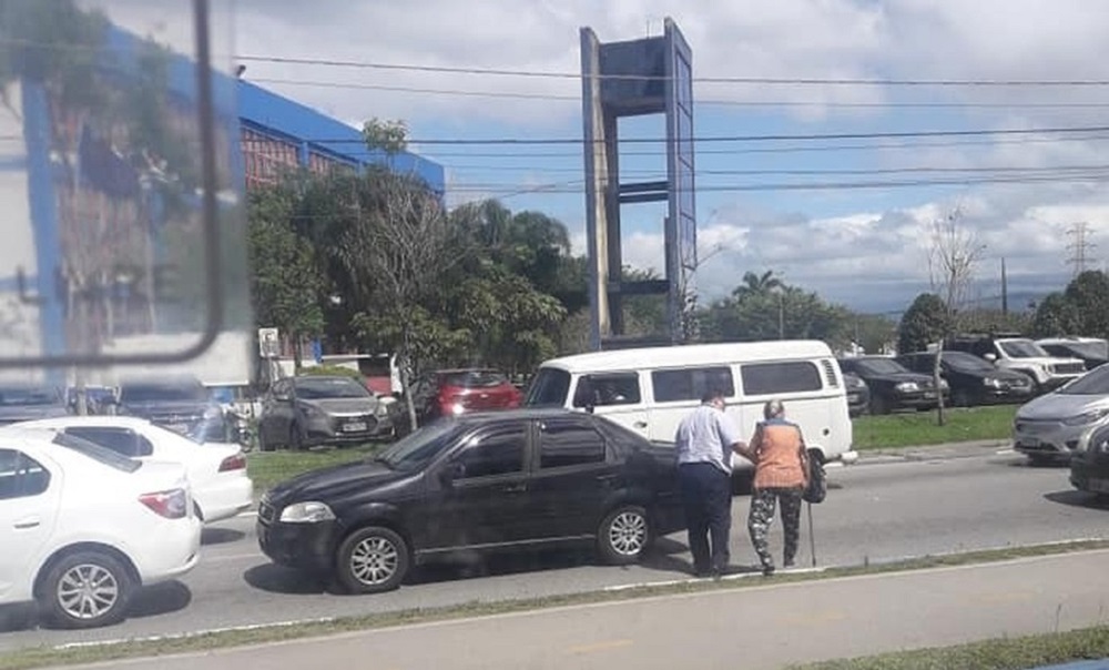 Ela então informou o motorista que queria apenas atravessar a rodovia. Ele pediu para que a idosa atravessasse na faixa de pedestre, mas ela disse que não poderia, pois estava atrasada para o trabalho. Com isso, Marcelo desceu do ônibus e ofereceu ajuda à idosa.