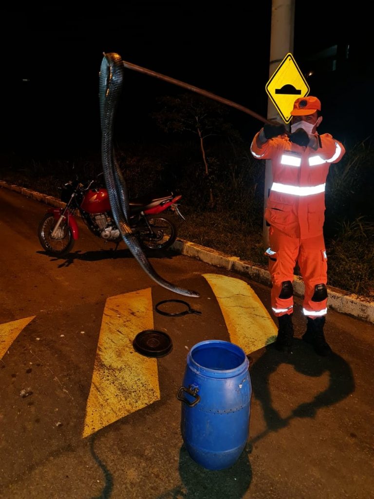 A equipe chegou ao local e encontrou a serpente escondida atrás de uma cômoda. Ela foi capturada e devolvida ao habitat natural sem ferimentos.