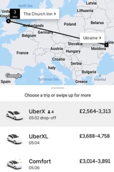 Comovida com a guerra e com a população ucraniana, ela pegou o celular e pediu uma viagem da Inglaterra até a Ucrânia pelo aplicativo de viagens Uber.