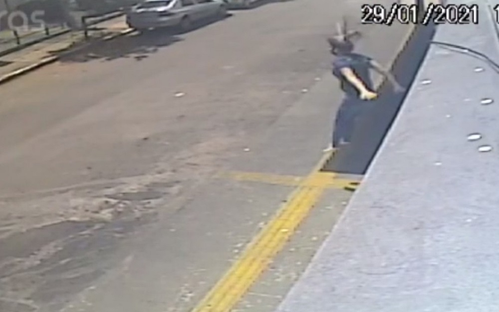 Uma mulher pulou do 1º andar de um prédio para fugir de um assaltante que ameaçou estuprá-la. As informações foram passadas pela Polícia Militar. O momento em que a mulher saltou foi registrado em vídeo. Devido aos ferimentos, ela precisou ser internada em um hospital, onde passou por cirurgia.