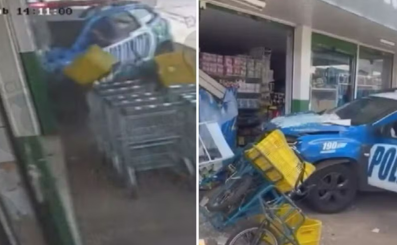 Na Hora H! Viatura da PM invade supermercado após colisão durante perseguição em Goiânia 12/01/2026 10h44