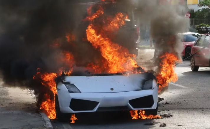 Na Hora H! Lamborghini de mais de R$ 1 milhão pega fogo e fica destruída em avenida de Goiânia 02/06/2025 7h17