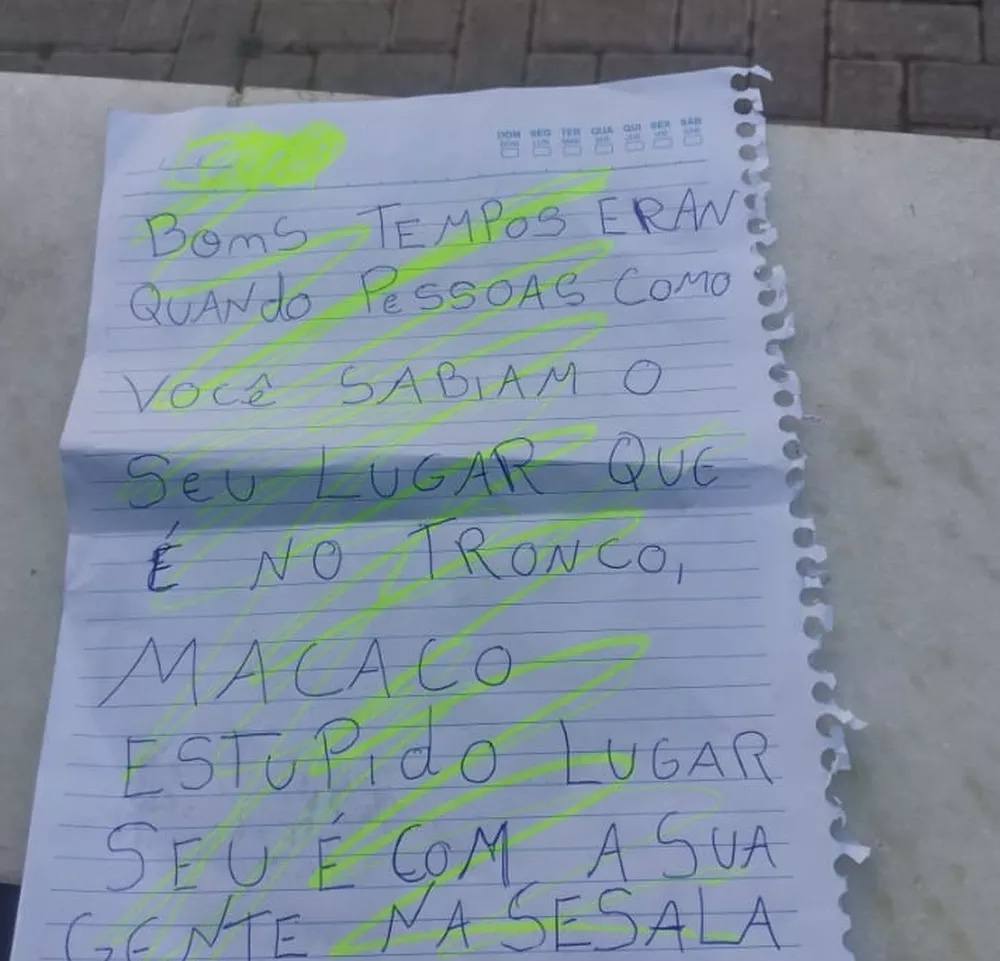 Na Hora H! Bilhetes com ofensas racistas são deixados em prédio de BH: ‘Seu lugar é no tronco, macaco’ 26/04/2022 10h22