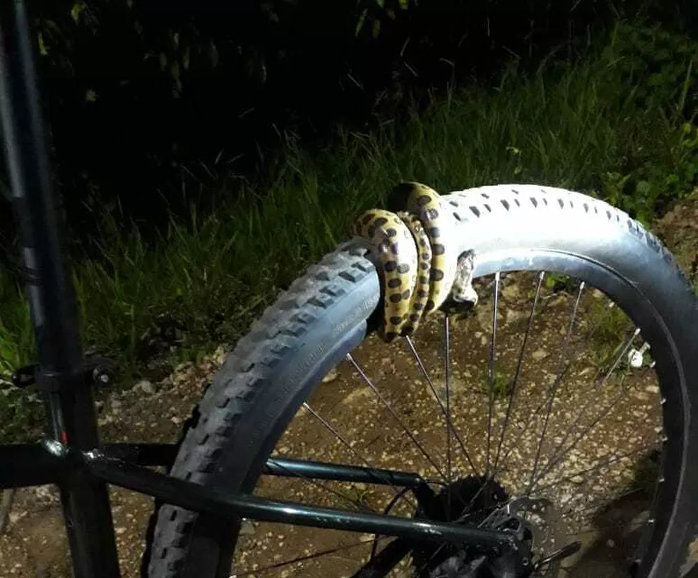 Na Hora H! Ciclista tenta salvar sucuri de atropelamento e animal ‘se enrola’ em sua bicicleta 10/03/2022 13h27