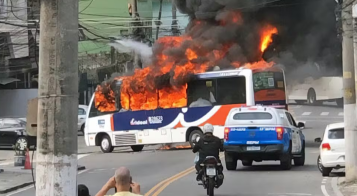 Na Hora H! Criminosos tomaram ônibus de assalto e bloquearam vias após operação da PM no RJ 19/08/2025 11h37