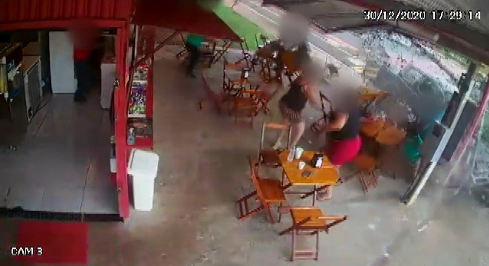 Imagens feitas por uma câmera de monitoramento mostram ao menos nove pessoas, divididas em pequenos grupos, sentadas em uma área aberta da pastelaria. Instantes depois, os clientes se levantam e, em seguida, a caminhonete aparece derrubando parte da estrutura externa do comércio. O veículo parou após colidir contra um poste.